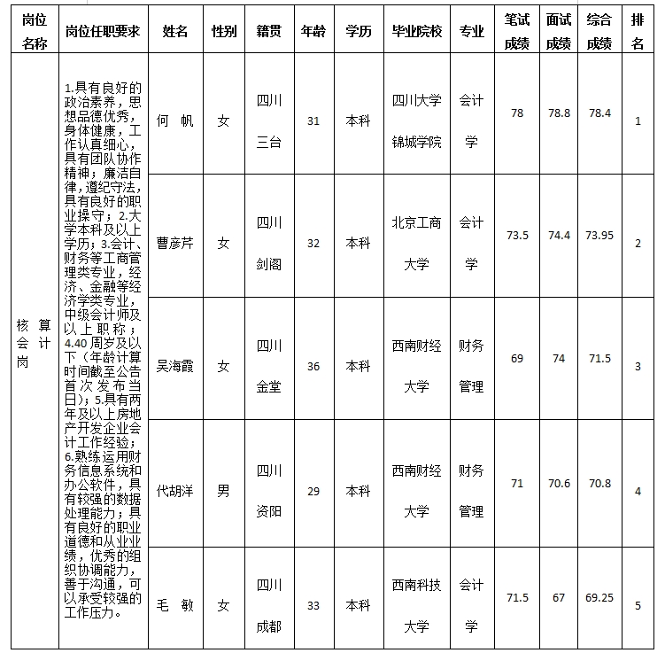 根據(jù)綿陽(yáng)市嘉遠(yuǎn)瑞華房地產(chǎn)開發(fā)有限公司發(fā)布的招聘公告及招聘相關(guān)規(guī)定,經(jīng)筆試、面試等程序,現(xiàn)將筆試、面試成績(jī)予以公示。