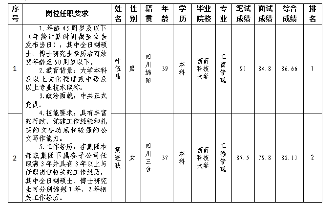 根據(jù)綿陽(yáng)市城市停車(chē)管理有限公司發(fā)布的競(jìng)聘公告及競(jìng)聘相關(guān)規(guī)定,經(jīng)筆試、面試等程序,現(xiàn)將筆試(面試)成績(jī)予以公示。